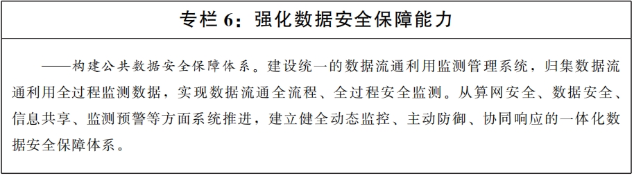 (十九)提升數(shù)據(jù)安全保障能力。加強(qiáng)公共數(shù)據(jù)可信采集、加密傳輸、可靠存儲、受控交換共享、實(shí)時分析、智能應(yīng)用、銷毀確認(rèn)及存證溯源等環(huán)節(jié)的安全技術(shù)支撐,有效規(guī)避數(shù)據(jù)隱私泄露、違規(guī)濫用等風(fēng)險。推動“數(shù)盾”體系試點(diǎn)示范工程建設(shè),提升數(shù)據(jù)匯聚關(guān)聯(lián)風(fēng)險識別和管控水平。培育數(shù)據(jù)流通安全檢測、評估、審計(jì)、公證等第三方專業(yè)服務(wù)機(jī)構(gòu),壯大數(shù)據(jù)安全治理服務(wù)規(guī)模,提升安全服務(wù)效能。探索運(yùn)用數(shù)據(jù)沙箱等技術(shù),構(gòu)建鼓勵創(chuàng)新、彈性包容的治理環(huán)境。