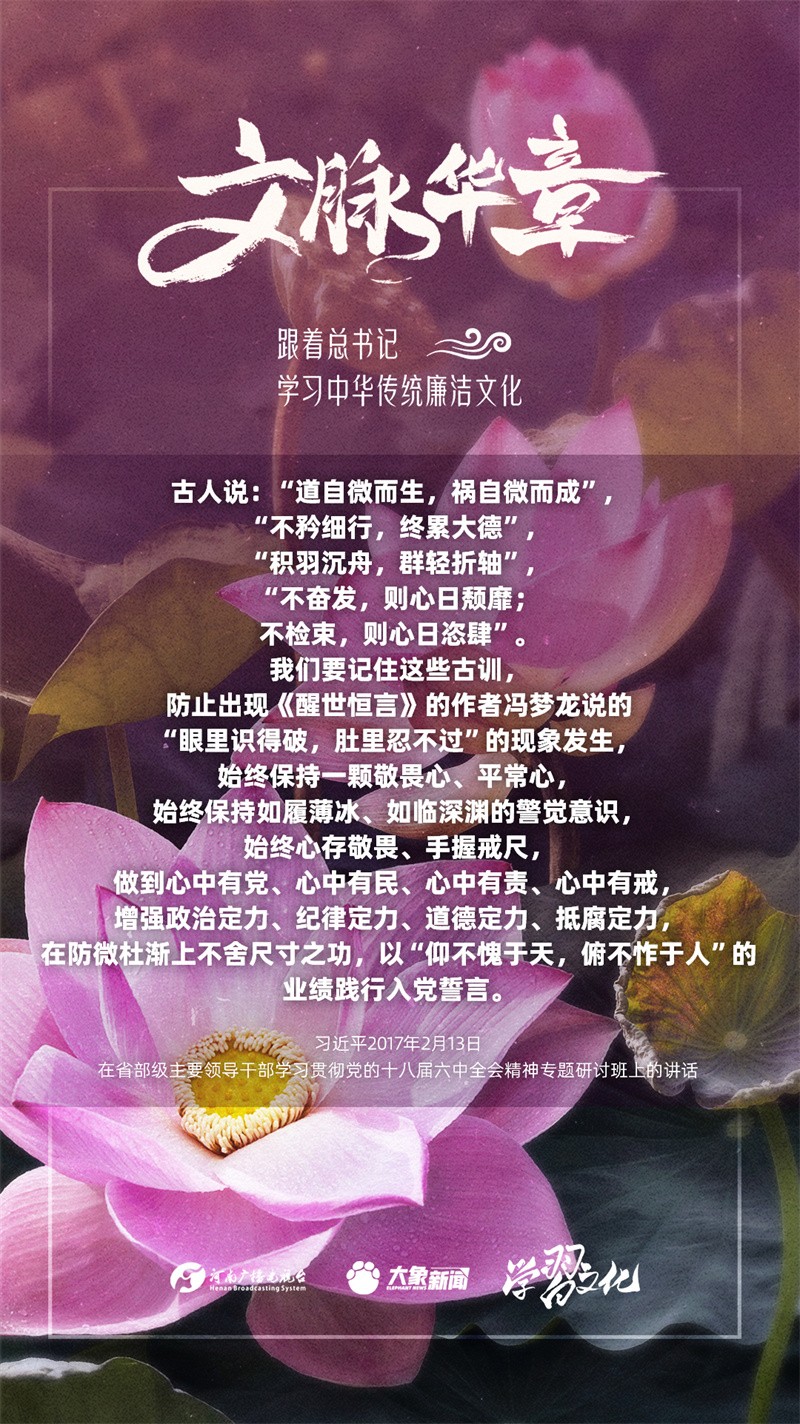 中華優(yōu)秀傳統(tǒng)文化蘊(yùn)含著豐富的廉潔文化,習(xí)近平總書記曾指出:沒有中華優(yōu)秀傳統(tǒng)文化、革命文化、社會(huì)主義先進(jìn)文化的底蘊(yùn)和滋養(yǎng),信仰信念就難以深沉而執(zhí)著。總書記常常引經(jīng)據(jù)典,教育引導(dǎo)廣大黨員干部正心修身,涵養(yǎng)文化,守住為政之本。讓我們一起跟著總書記學(xué)習(xí)中華傳統(tǒng)廉潔文化。今天推出第三期。