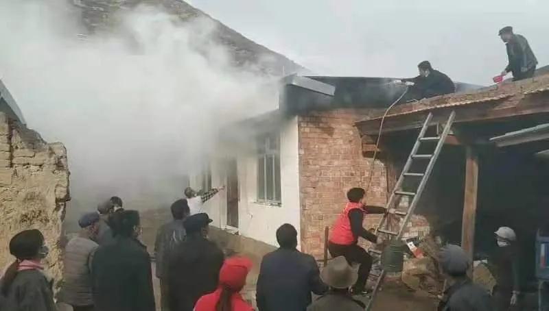 10月30日下午3點,交通監(jiān)理公司負(fù)責(zé)幫扶的臨潭縣洮濱鎮(zhèn)馬旦溝村一戶村民家中突然冒出滾滾濃煙,火光在濃煙中忽隱忽現(xiàn)。著火是一座磚木結(jié)構(gòu)彩鋼屋頂?shù)男路?,火從屋頂燒起,越燒越旺。著火的房屋旁邊堆放著多年的老柴火,干燥異常,一絲火星就能點燃,而與著火點緊鄰著的就是布局緊密的鄉(xiāng)親們的房屋,再往外圍則緊接著山林,如果火勢蔓延,后果將不堪設(shè)想。