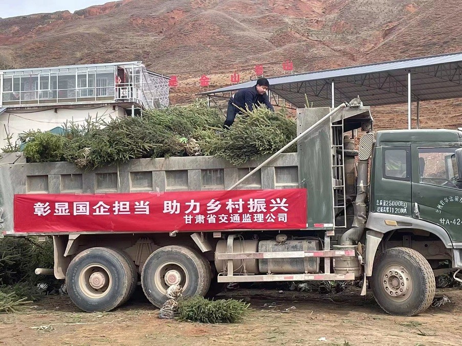 植樹現(xiàn)場,黨旗招展,有的揮鍬鏟土,有的扶樹填坑,有的澆水灌根,大家分工合作,默契配合,干勁十足,認(rèn)真完成每一道工序。在大家的共同努力下,由交通監(jiān)理公司運(yùn)送的800余棵云杉樹苗迎風(fēng)挺立,為馬旦溝村再添一抹新綠。
