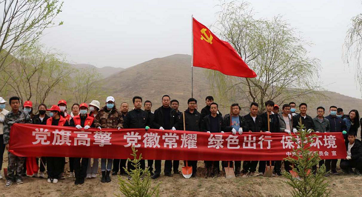 2022年4月,根據(jù)王旗鎮(zhèn)安排,駐村幫扶工作隊(duì)員會(huì)同其他鎮(zhèn)村干部組織群眾數(shù)十人,在洮河西岸磨溝段開(kāi)展了以“黨旗高擎、黨徽常耀、綠色出行、保護(hù)環(huán)境”為主題的義務(wù)植樹(shù)活動(dòng),共栽下4000余棵松樹(shù)苗,掀起了植樹(shù)造林的熱潮。