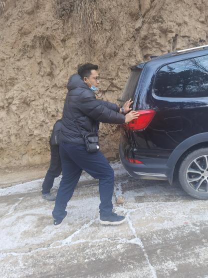 很多在隱患點上的行政村分布在舟曲縣周邊的大山高處,又逢舟曲剛下完大雪,山路崎嶇,道路積雪結(jié)冰,即使在車上套上防滑鏈還是無法到達一些村落。面對重重困難,工程師們沒有退縮,當積雪太深或結(jié)冰地路面太滑,車輛完全無法通行時,他們或推車前行,或頂風(fēng)冒雪,深一腳淺一腳地步行好幾公里,走到開展工作的村子里去。
