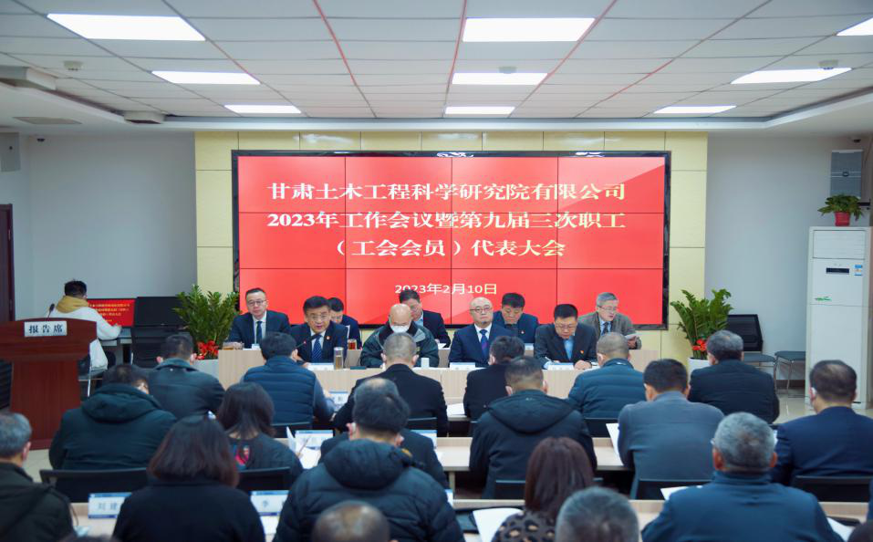 2月10日,甘肅土木工程科學(xué)研究院有限公司召開2023年工作會議暨第九屆三次職工(工會會員)代表大會,集團(tuán)公司黨委委員、副總經(jīng)理梁建平到會指導(dǎo)。土木工程院董事長曹慶作了題為《蓄力增勢、提質(zhì)增效,主動作為、勇毅前行,奮力跑出高質(zhì)量發(fā)展的加速度》的工作報告,黨委副書記、監(jiān)事會主席、工會主席張磊作了題為《勇毅前行創(chuàng)佳績,踔厲奮發(fā)譜新篇,以黨的二十大精神推動工會工作高質(zhì)量發(fā)展》的工會工作報告、工會經(jīng)費收支情況報告及2022年度財務(wù)工作報告。會上對2022年度先進(jìn)集體、優(yōu)秀管理者、先進(jìn)工作者及優(yōu)秀科技工作者進(jìn)行了表彰。職工代表、列席代表等64人參加。