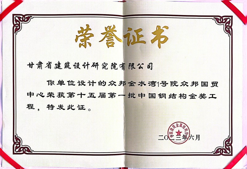 近日,從中國建筑金屬結構協(xié)會傳來喜訊,由省建筑設計院總建筑師、甘肅省工程勘察設計大師馮志濤領銜團隊設計的“眾邦國貿中心”榮獲“第十五屆第一批中國鋼結構金獎工程”榮譽稱號。