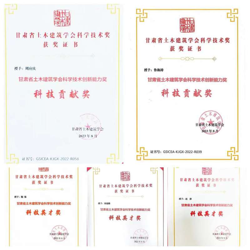 近日,土木工程院榮獲甘肅省土木建筑學會科技創(chuàng)新獎,兩人獲得甘肅省土木建筑學會科技貢獻獎,三人獲得甘肅省土木建筑學會科技英才獎。獎項的獲得,充分展現(xiàn)了土木工程院的專業(yè)技術水平和科研能力。