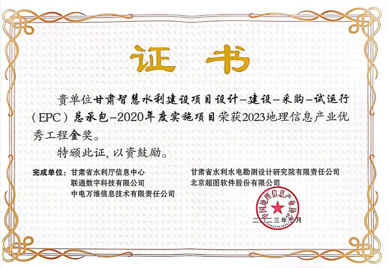 近日,第一屆中國測(cè)繪地理信息大會(huì)在浙江召開。由省水利廳實(shí)施、省水電設(shè)計(jì)院參與完成的“甘肅智慧水利建設(shè)項(xiàng)目設(shè)計(jì)-建設(shè)-采購-試運(yùn)行(EPC)總承包-2020年度實(shí)施項(xiàng)目”榮獲2023中國地理信息產(chǎn)業(yè)優(yōu)秀工程金獎(jiǎng)。