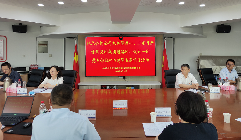為認(rèn)真貫徹落實(shí)黨的十九大和十九屆歷次全會(huì)精神及省第十四黨代會(huì)精神,創(chuàng)新基層黨建工作載體,提高基層黨建工作水平,進(jìn)一步鞏固黨史學(xué)習(xí)教育成果,6月16日,蘭州乾元交通規(guī)劃設(shè)計(jì)咨詢有限公司機(jī)關(guān)、第一項(xiàng)目所、第二項(xiàng)目所黨支部與甘肅交科集團(tuán)設(shè)計(jì)一所、道路所黨支部聯(lián)合舉辦了主題為“支部共建聚合力 互促共贏雙提升”的結(jié)對(duì)共建暨主題黨日活動(dòng)。