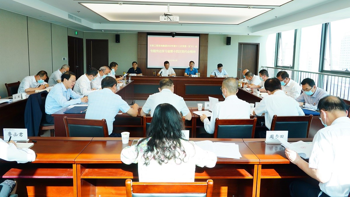 6月2日,甘肅工程咨詢集團召開黨委(擴大)會議,專題傳達學習中國共產(chǎn)黨甘肅省第十四次代表大會精神。會議由黨委書記、董事長宋忠慶主持,集團公司黨委委員,財務總監(jiān)、董事會秘書,機關各部門負責人;各子公司黨委書記、董事長(執(zhí)行董事)參加會議。
