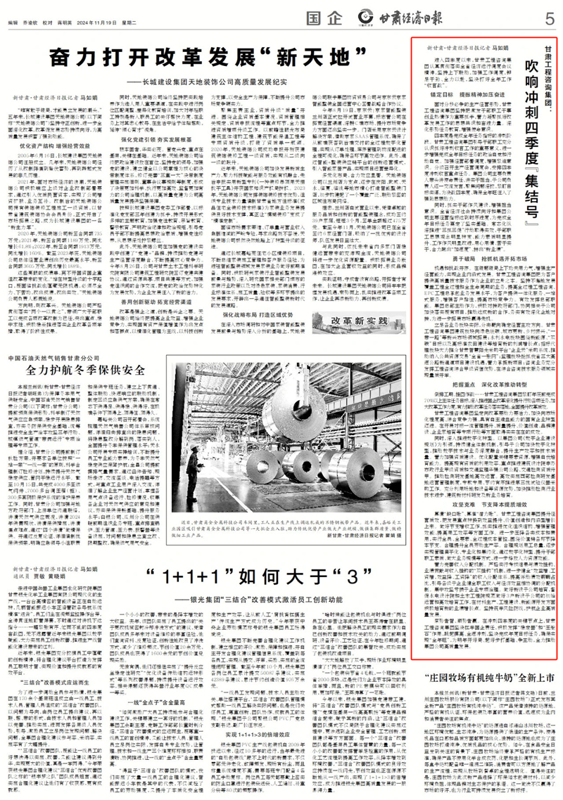 甘肅工程咨詢集團堅定向改革要動力要活力,加快向市場化程度高、綜合競爭力強、具有自主造血能力的國有企業(yè)轉型邁進。在開展對標一流管理提升、質量提升、價值創(chuàng)造、品牌建設、企業(yè)家培育等專項行動等方面取得實實在在的成效。