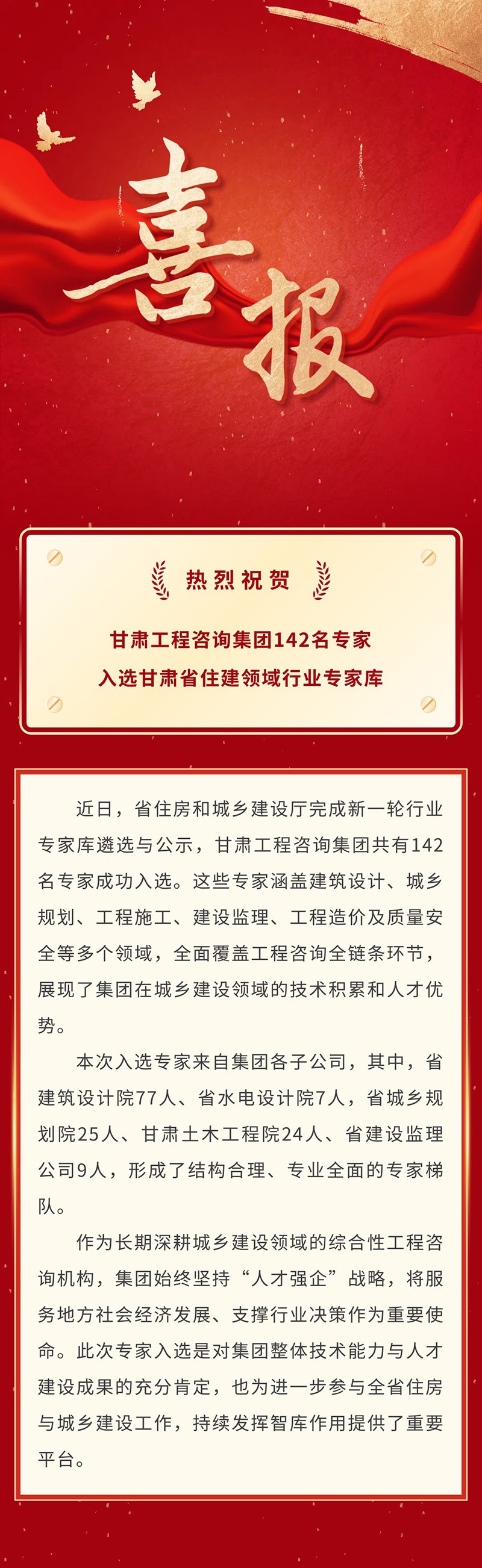 喜報(bào) | 甘肅工程咨詢(xún)集團(tuán)142名專(zhuān)家入選甘肅省住建領(lǐng)域行業(yè)專(zhuān)家?guī)?/span>