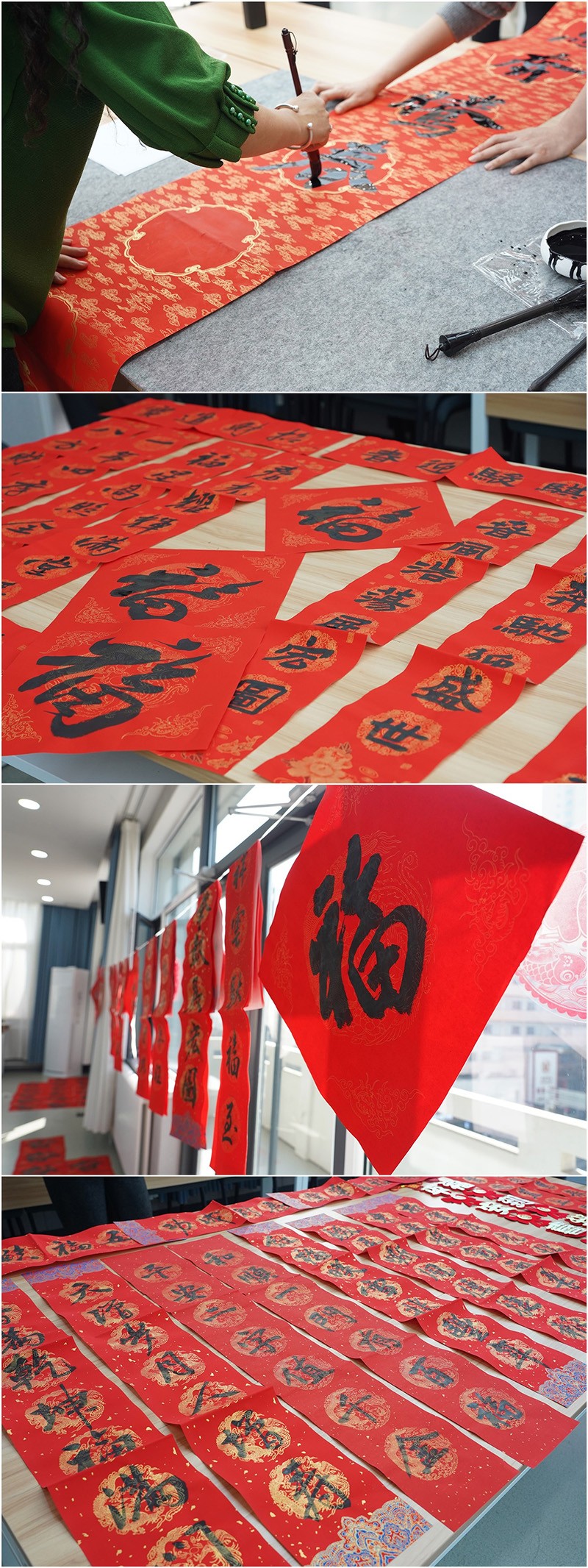 活動(dòng)現(xiàn)場墨香四溢,職工們熱情參與,有的圍桌挑選心儀作品,有的現(xiàn)場“點(diǎn)單”定制專屬春聯(lián),一副副寓意吉祥的春聯(lián)、一個(gè)個(gè)筆力遒勁的“?!弊周S然紙上,承載著大家對新年的美好期盼與祝福。