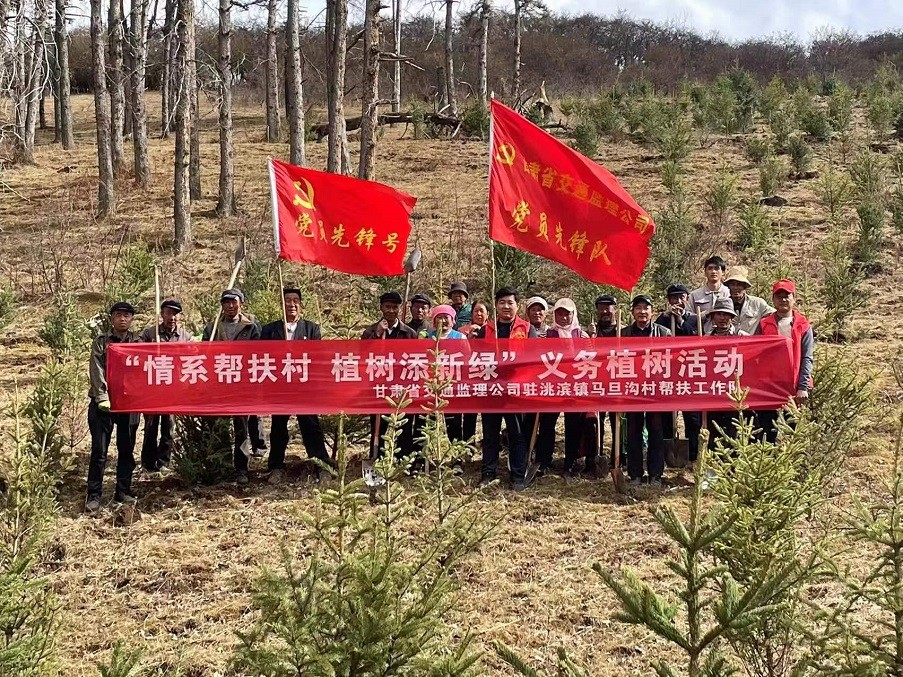 為積極響應(yīng)習(xí)近平總書記“全社會都做生態(tài)文明建設(shè)的實(shí)踐者、推動者,讓祖國天更藍(lán)、山更綠、水更清、生態(tài)環(huán)境更美好”的號召,以打造“五無甘南”,創(chuàng)建“十有家園”為目標(biāo),加快推進(jìn)鄉(xiāng)村振興戰(zhàn)略實(shí)施,共建生態(tài)宜居宜業(yè)的美麗鄉(xiāng)村,近日,甘肅省交通工程建設(shè)監(jiān)理有限公司駐臨潭縣洮濱鎮(zhèn)馬旦溝村幫扶工作隊積極發(fā)揮自身職能,協(xié)同包村干部、村“兩委”成員、駐村黨員、義務(wù)志愿者及群眾代表等開展義務(wù)植樹活動。