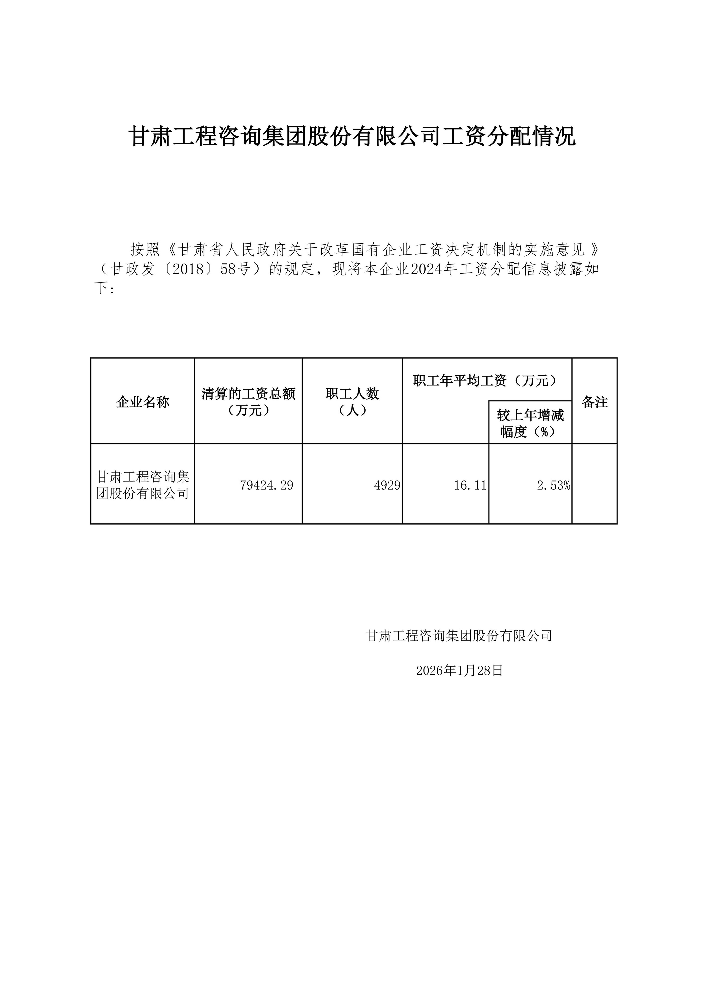 甘肅工程咨詢集團股份有限公司董事、監(jiān)事、高級管理人員2024年度薪酬情況及甘肅工程咨詢集團股份有限公司工資分配情況