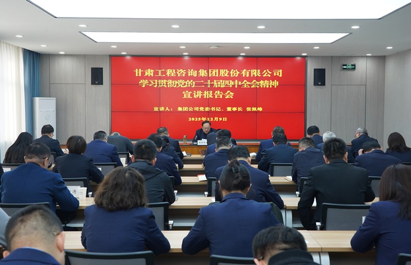 12月9日,甘肅工程咨詢集團(tuán)召開(kāi)學(xué)習(xí)貫徹黨的二十屆四中全會(huì)精神宣講報(bào)告會(huì)。集團(tuán)公司黨委書(shū)記、董事長(zhǎng)張佩峰作專題宣講報(bào)告,圍繞全會(huì)重大意義、核心要義及“十四五”發(fā)展成就、“十五五”時(shí)期目標(biāo)任務(wù)等進(jìn)行了系統(tǒng)闡釋,并結(jié)合集團(tuán)實(shí)際提出貫徹落實(shí)的思路舉措。